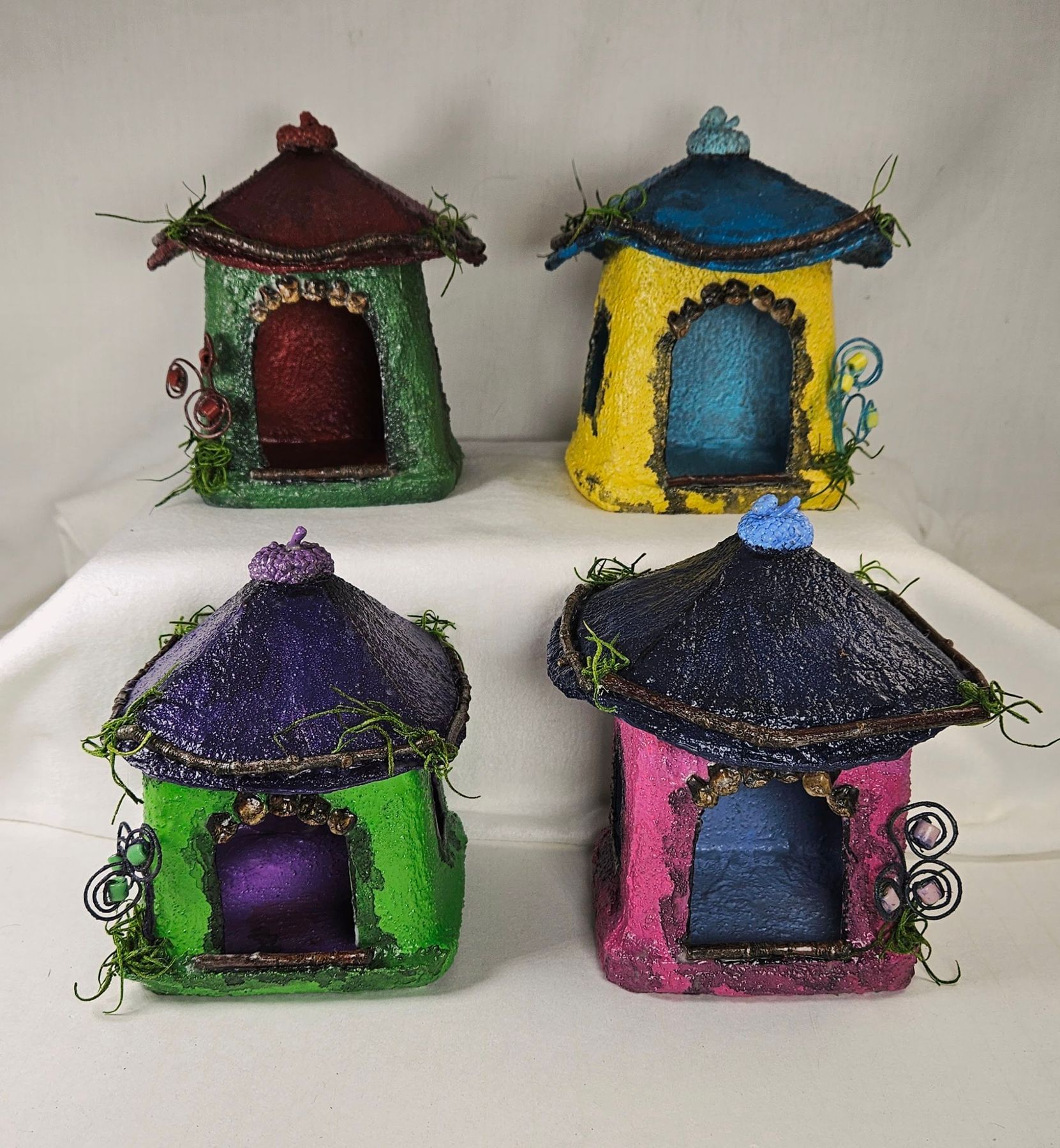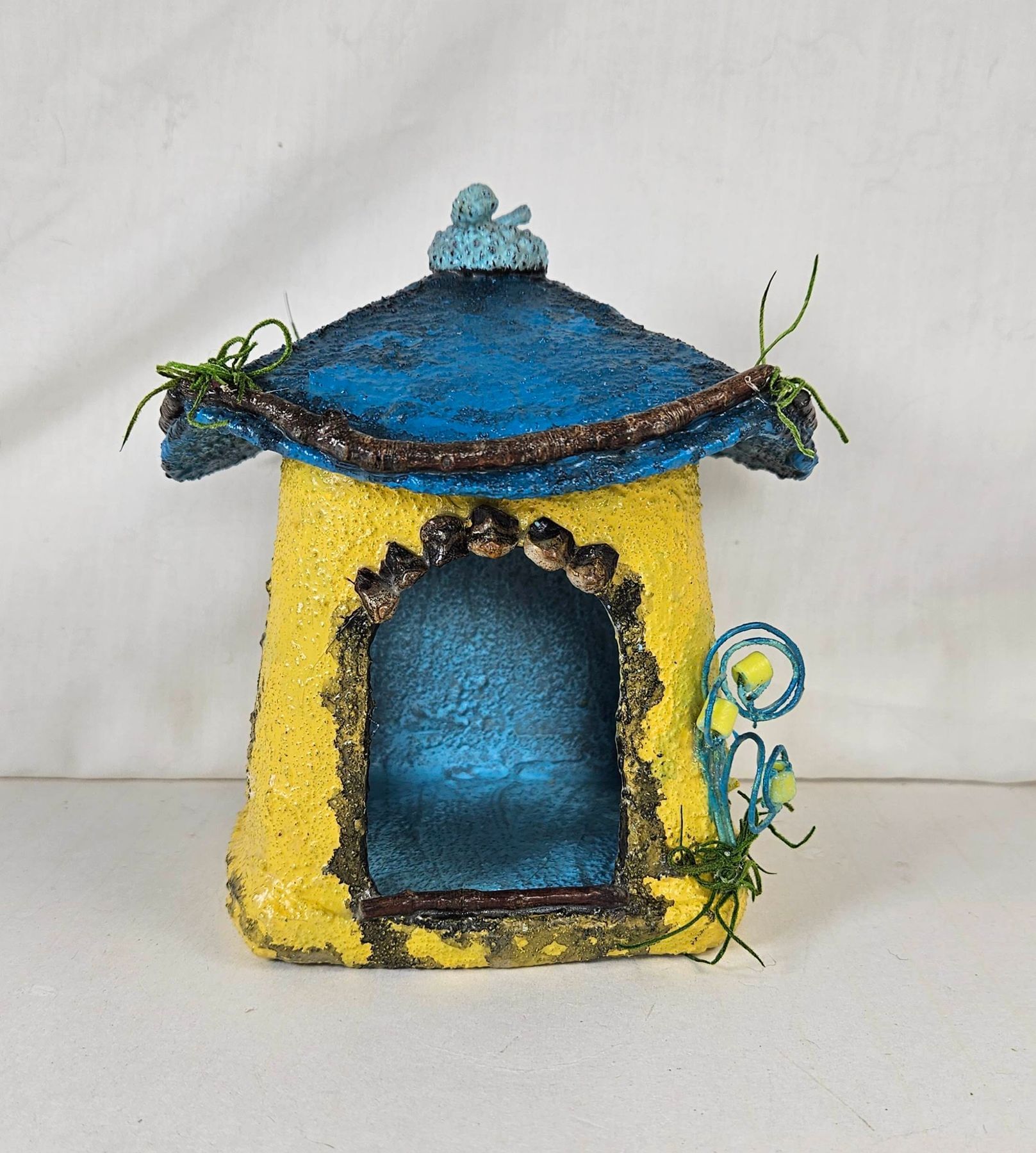 Yellow Outdoor Fairy House: Twig & Moss Garden Decor